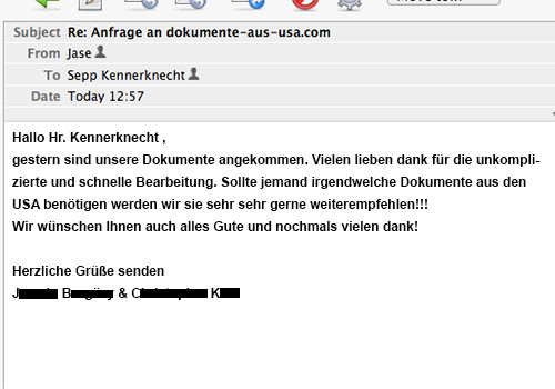 Wir beantragen amtliche, beglaubigte Dokumente und Urkunden aus allen US-Staaten